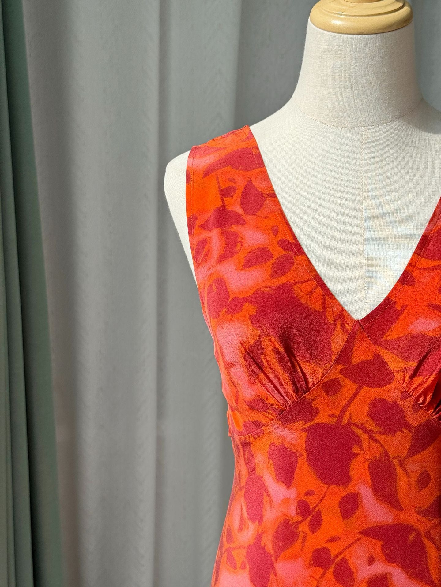 100% Silk Bias-Cut Sleeveless Dress – Red