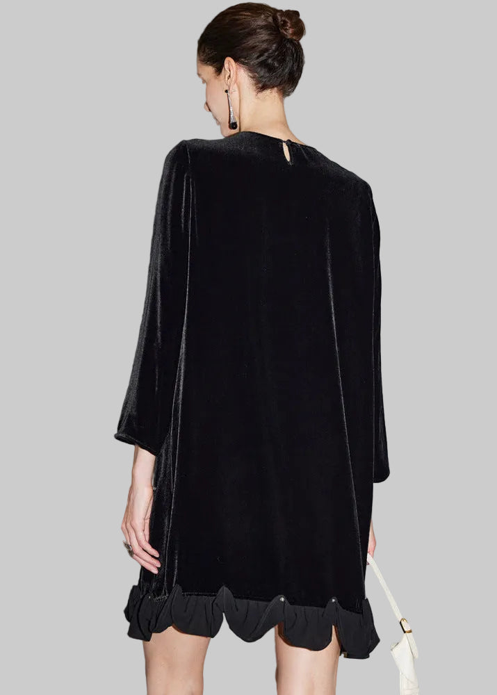 Crafted from luxurious silk velvet made with mulberry silk, this elegant mini dress is designed for women who appreciate understated sophistication.